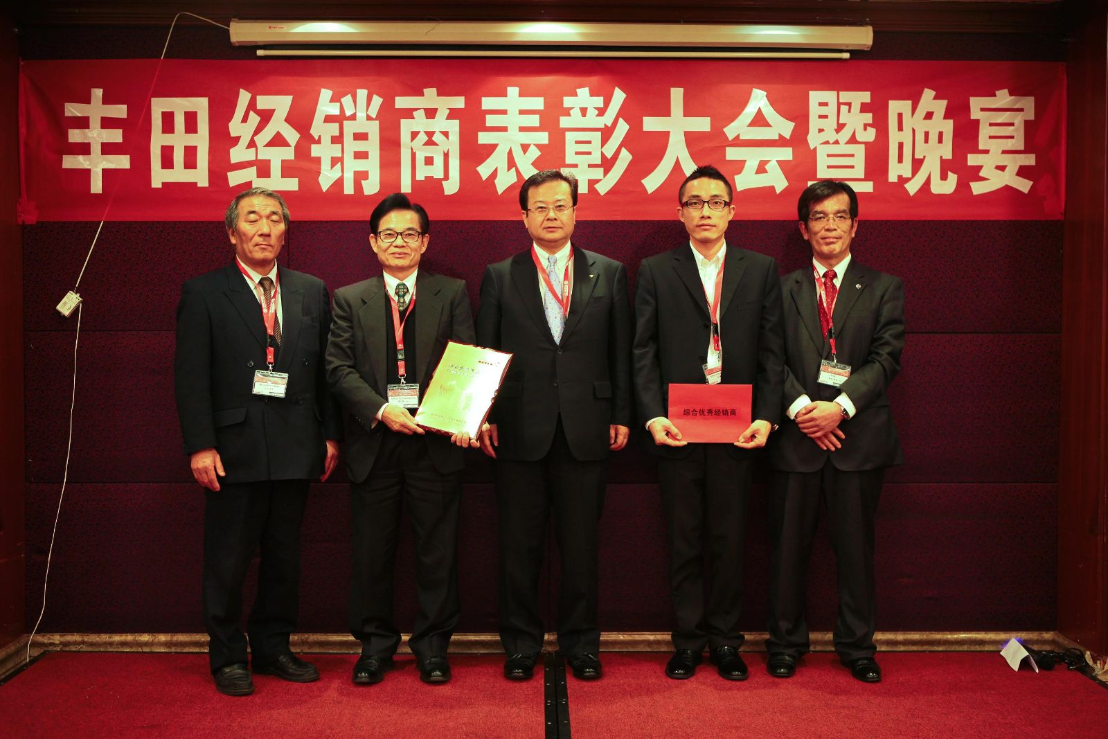 2012年2月9日-2月10日、2012年度豐田產(chǎn)業(yè)車輛(TMHS)經(jīng)銷商峰會(huì)隆重召開,出席大會(huì)的有來自全國(guó)的豐田產(chǎn)業(yè)車輛經(jīng)銷商和豐田自動(dòng)織機(jī),豐田通商等代表近百余人。9日晚上,全體與會(huì)代表于廣州參加了大會(huì)晚宴,在山北董事長(zhǎng)熱情洋溢的干杯致辭之后,大家共同舉杯為過去一年驕人的銷售成績(jī)慶祝,隨后2011年度優(yōu)秀經(jīng)銷商(金豐公司)表彰儀式正式開始,由日本總部的豐田產(chǎn)業(yè)車輛集團(tuán)佐佐木總裁,TMHS山北董事長(zhǎng),植田總經(jīng)理共同向2011年度優(yōu)秀經(jīng)銷商頒發(fā)了獎(jiǎng)牌并合影留念。