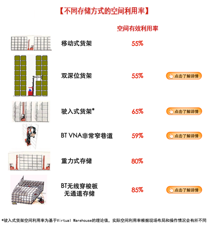 實現(xiàn)更高空間利用率的全新鉸接式轉(zhuǎn)向裝置鉸接式設(shè)計,車輛在換巷時所需空間更小,較傳統(tǒng)VNA叉車 ■每個通道、每層可以多出4個托盤位(換巷道兩側(cè)各2個) ■按8層貨架計算,每個通道可以多出32個托盤位