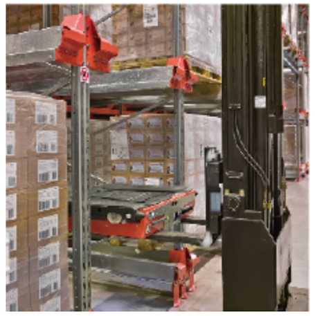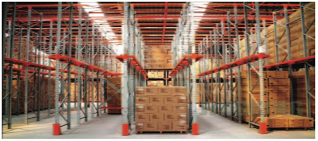 針對有限空間里同類貨物堆垛,推薦使用內(nèi)部駛?cè)胧截浖?。它可幫助減少占用通道,充分利用空間。駕駛員可駕駛叉車進入貨架內(nèi)部進行堆垛作業(yè)。不但能有效利用整個貨架的存儲空間,且初期投資成本較低。作為較為經(jīng)濟的批量存儲方式之一,駛?cè)胧截浖苓m用于存儲單位較少,周轉(zhuǎn)率較低的倉庫